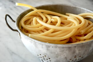 For Glen, it will be this truffled macaroni with shallots and mascarpone and a sprinkling of Parmesan. I think a crisp escarole salad with a lemon-anchovy vinaigrette and some fried capers will pair beautifully alongside. A big Italian red (maybe from Tuscany) will be the perfect pairing.